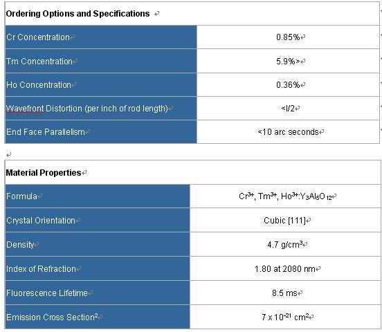 Cr, Tm, Ho:YAG (2080nm) (Chromium, Thulium, Holmium doped Yttrium Aluminum Garnet)